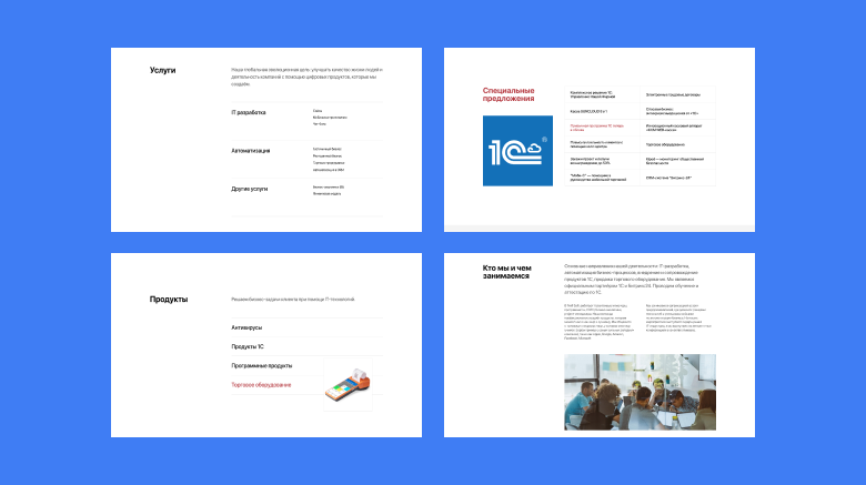 Провожу визуальный анализ вашей ниши и собираю удачные решения по стилю. Затем отрисовываю макеты ключевых страниц. Презентую и обосную принятые решения. После согласования делаю дизайн остальных страниц и адаптирую под все разрешения экранов.